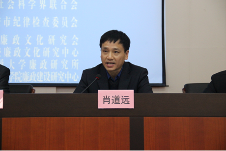 陜西高校廉政文化研究中心副主任兼秘書長、西北政法大學(xué)紀委書記肖道遠致辭。