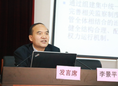 西安交通大學(xué)廉政研究所教授、博士生導(dǎo)師李景平做題為“從十九大報告看我國監(jiān)察行政體制改革創(chuàng)新”學(xué)術(shù)報告。