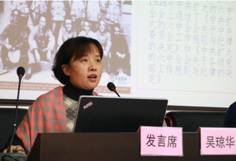 陜西行政學(xué)院法學(xué)教研室主任、副教授吳瓊?cè)A學(xué)術(shù)交流題目為:“全面從嚴治黨視域下黨內(nèi)法規(guī)的軟法完善研究”。