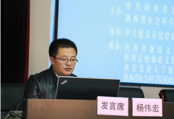 延安大學(xué)教授、延安大學(xué)發(fā)展規(guī)劃處處長楊偉宏做“調(diào)查研究與全面從嚴治黨”
