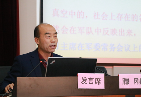 中國人民解放軍國防大學(xué)政治學(xué)院教授滕剛做“持之以恒正風肅紀,全面奪取反腐斗爭壓倒性勝利”學(xué)術(shù)報告。