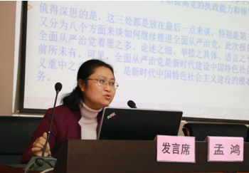 西北政法大學(xué)馬克思主義學(xué)院副院長、副教授魯洋做題為“中國共產(chǎn)黨全面從嚴治黨的歷程及經(jīng)驗”的學(xué)術(shù)交流報告。