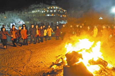 嘉賓學(xué)者在佳縣赤牛坬體驗篝火晚會