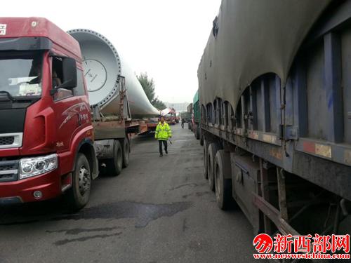 由于部分大件車輛需要監(jiān)護通行,監(jiān)護路段從陜蒙界至孟家灣高速收費站和店塔高速收費站兩條路,到達210國道孟家灣收費站路段拐彎多,行駛貨運車輛較多,部分大件車輛太長(運載貨物有風力發(fā)電機風扇葉車貨總長63米),存在一定的安全隱患,給監(jiān)護工作帶來一定的難度。對此,執(zhí)法人員用自己的判斷力、預測力和安全防護措施能力采取安全措施,每到十字路口強制停駛各類車輛,在拐彎處對所有貨運車輛進行喊話提醒,確保大件車輛順利通過。