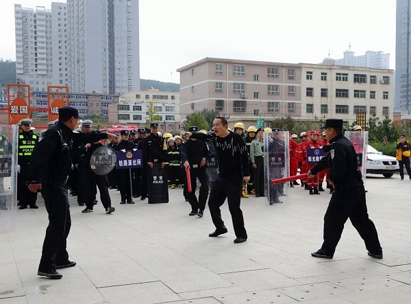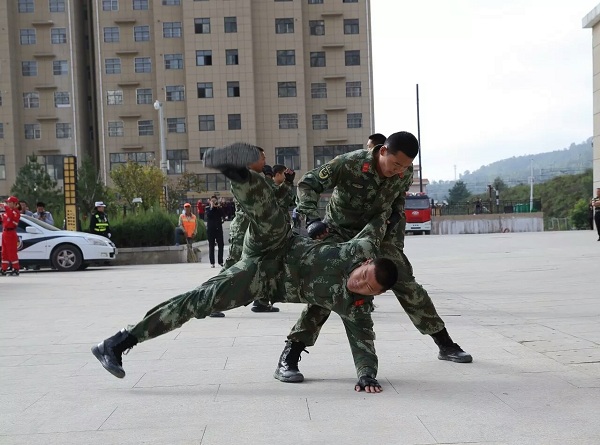 查緝戰(zhàn)術由巡特警隊員就指揮手勢、上拷技術、擒敵技術和車輛查緝進行演練,貼近實戰(zhàn)。警用組合盾牌術通過運用警棍、盾牌、抓捕、帶離等警務技戰(zhàn)術,達到制止、打擊、震懾的目的。武警擒敵戰(zhàn)術綜合運用踢、打、摔、擒等技法徒手格斗,以快制敵、以巧取勝。消防演練模擬火災現(xiàn)場,消防官兵迅速集結(jié)處置,充分展示了消防官兵的過硬素質(zhì)。