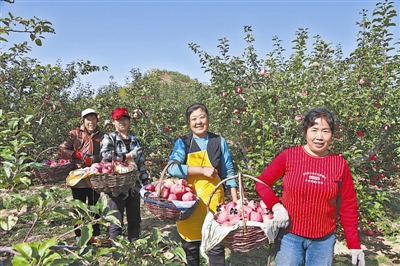 山地蘋果已成為米脂、綏德、子洲等南部縣帶動農(nóng)民致富的支柱產(chǎn)業(yè)(資料照片)。