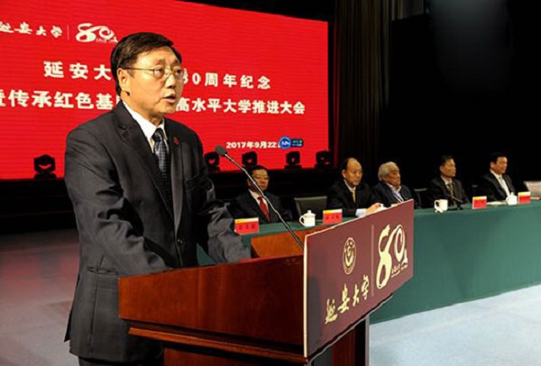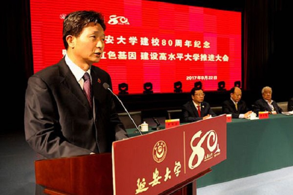 隨后,婁勤儉書記發(fā)表重要講話,向?qū)W校全體師生員工和海內(nèi)外校友表示熱烈的祝賀并致以親切的問候。婁書記指出,延安大學(xué)作為毛澤東同志親自命名、黨創(chuàng)辦的第一所綜合性大學(xué),80年來始終扎根革命圣地,傳承紅色基因,秉承立身為公、學(xué)以致用的校訓(xùn),為民族解放、革命勝利和老區(qū)建設(shè)做出了重要貢獻(xiàn)。婁書記強(qiáng)調(diào),作為一所具有光榮歷史的高校,弘揚(yáng)好革命傳統(tǒng),傳承好紅色基因,把延安精神一代一代傳承下去,是延安大學(xué)應(yīng)該肩負(fù)起的歷史責(zé)任;作為一所革命老區(qū)的高校,扎根紅色沃土,服務(wù)老區(qū)發(fā)展,為老區(qū)全面建成小康社會(huì)、加快追趕超越步伐提供更強(qiáng)大的人才和智力支持,是延安大學(xué)義不容辭的時(shí)代使命;作為正在蓬勃發(fā)展的高校,堅(jiān)持以創(chuàng)新為引領(lǐng),以育人為目標(biāo),堅(jiān)定不移走內(nèi)涵式發(fā)展道路,不斷彰顯辦學(xué)特色,不斷提升綜合實(shí)力,在我國高等教育加快發(fā)展的大潮中站穩(wěn)腳跟、做優(yōu)做強(qiáng),是延安大學(xué)必須面對(duì)的現(xiàn)實(shí)問題。延安大學(xué)要以建校80周年為新起點(diǎn),在教育部和省委省政府的全力支持下,婁書記講話要點(diǎn):一是要認(rèn)真學(xué)習(xí)重要批示。二是要堅(jiān)持正確辦學(xué)方向。三是不斷提升辦學(xué)實(shí)力。四是著力強(qiáng)化內(nèi)部管理。弘揚(yáng)延安精神,發(fā)揚(yáng)光榮傳統(tǒng),低調(diào)務(wù)實(shí)不張揚(yáng),埋頭苦干,為把延安大學(xué)建成特色鮮明、國內(nèi)知名的高水平教學(xué)研究型大學(xué)而努力奮斗。