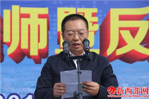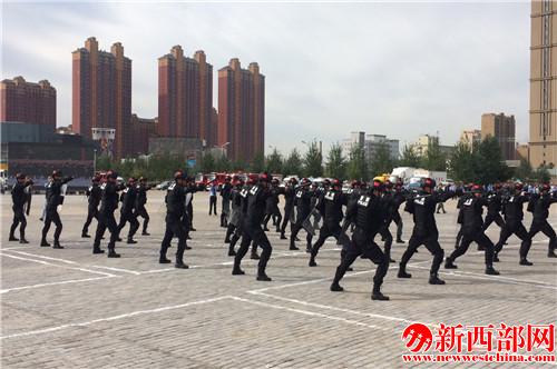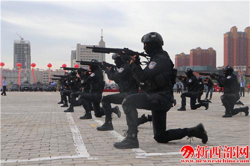 新西部網(wǎng)榆林訊(記者王永程見習記者李佳奕 高鵬程)迎接十九大,忠誠保平安。2017年9月19日,榆林市公安機關組織舉行了十九大安保誓師大會以及反恐突應急演練。榆林市委常委、常務副市長李臨春,市人大常委會副主任李曉媛,市政協(xié)副主席蘇世強,市中級人民法院院長雷紅新,市人民檢察院檢察長范思泓,榆林軍分區(qū)副司令員谷星林,省公安廳反恐總隊副隊長賀炳,中石油長慶油田分公司保衛(wèi)部部長田進祥等領導出席了會議。榆林市副市長、市公安局黨委書記、局長張明主持。