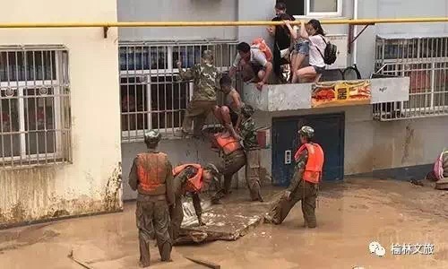 災(zāi)情發(fā)生后,榆林市立即啟動(dòng)防汛應(yīng)急響應(yīng),武警、消防、交警,還有志愿者,他們不懼艱險(xiǎn),奮戰(zhàn)在抗洪的第一線。
