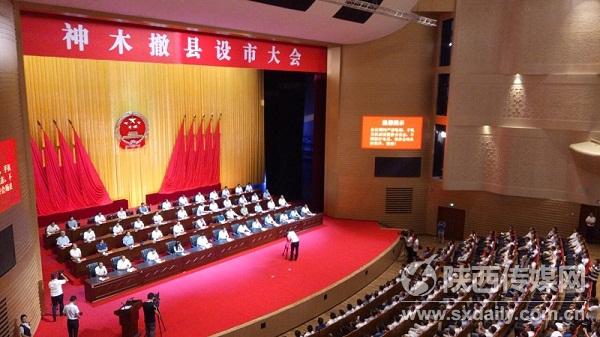 會(huì)上,陜西省民政廳廳長(zhǎng)趙政才宣讀了《民政部關(guān)于同意陜西省撤銷神木縣設(shè)立縣級(jí)神木市的批復(fù)》。榆林市委書記戴征社,榆林市市長(zhǎng)尉俊東,市政協(xié)主席劉春橋,市委常委、紀(jì)委書記張凱盈,市人大常委會(huì)副主任李文明等為神木授牌。榆林市委常委陳寧、杜壽平、李博等領(lǐng)導(dǎo),以及在神木工作過(guò)的退休老領(lǐng)導(dǎo)等到會(huì)祝賀。榆林市市長(zhǎng)尉俊東講話。會(huì)議由榆林市委常委、市委秘書長(zhǎng)雷正西主持。神木市委書記張生平發(fā)言。