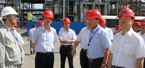 7月11日,市委書記戴征社(左二)、市長尉俊東(右一)在華電煤基芳烴項目現(xiàn)場調(diào)研。趙小軍攝