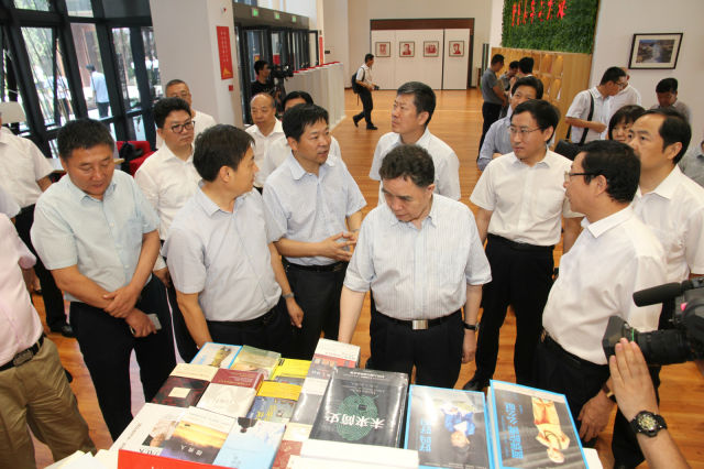 全國(guó)人大常委、全國(guó)人大教科文衛(wèi)主任委員、中國(guó)出版協(xié)會(huì)理事長(zhǎng)柳斌杰,中國(guó)版權(quán)協(xié)會(huì)理事長(zhǎng)閻曉宏,延安市委副書記、市長(zhǎng)薛占海,中國(guó)延安精神研究會(huì)副會(huì)長(zhǎng)兼秘書長(zhǎng)、延安書局指導(dǎo)委員會(huì)執(zhí)行主任蘇希勝為延安書局揭牌