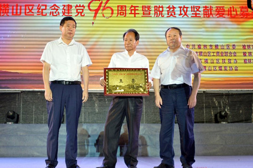 王效力、王振華、周建國、黃永旺、呂亞偉、焦延平等橫山區(qū)領(lǐng)導(dǎo)在活動(dòng)現(xiàn)場(chǎng)代表區(qū)委、區(qū)政府及全體貧困戶向所有伸出援助之手的企業(yè)表示感謝,并為募捐單位和個(gè)人頒發(fā)了愛心獎(jiǎng)牌。