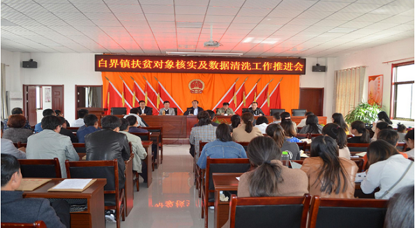為了確保精準(zhǔn)扶貧工作做到識別精準(zhǔn),真正將貧困人口識別在貧困系統(tǒng)中,從而為精準(zhǔn)施策、精準(zhǔn)脫貧奠定堅實基礎(chǔ),4月30日,白界鎮(zhèn)組織召開扶貧對象核實及數(shù)據(jù)清洗工作推進(jìn)會,政府全體領(lǐng)導(dǎo)干部、第一書記、駐村工作隊成員、村兩委負(fù)責(zé)人等100多人參加了會議。
