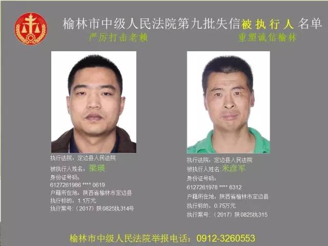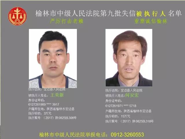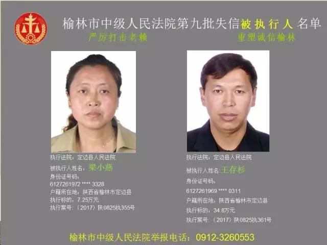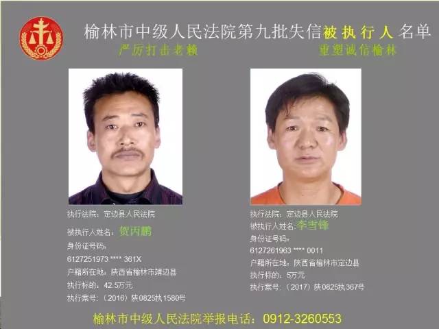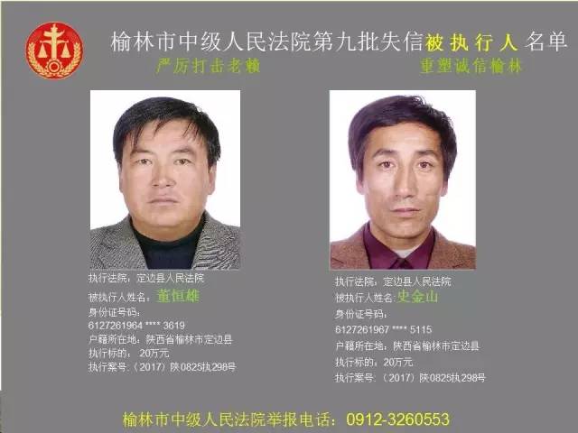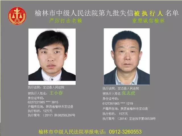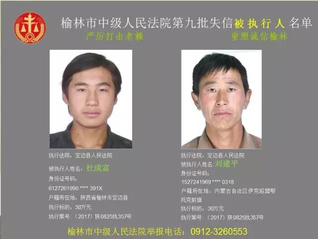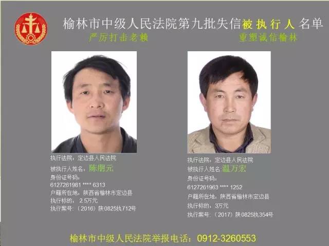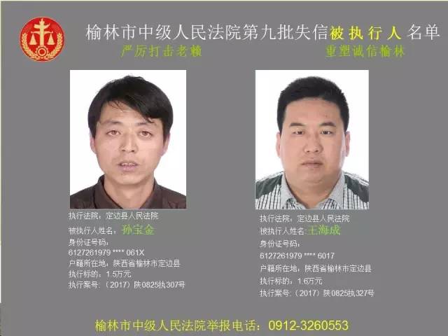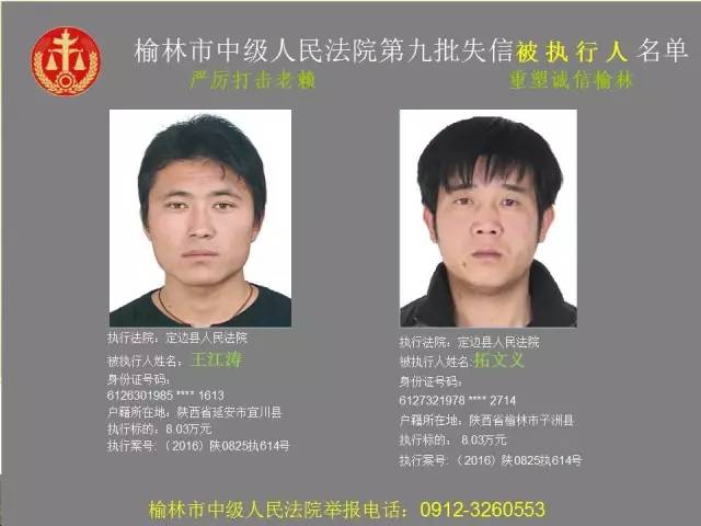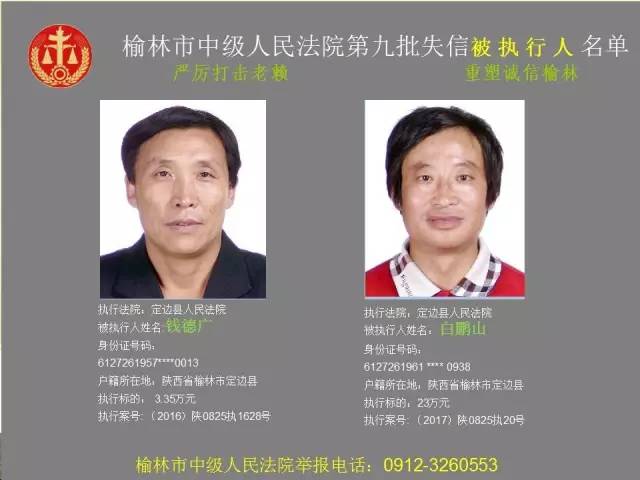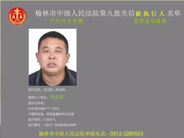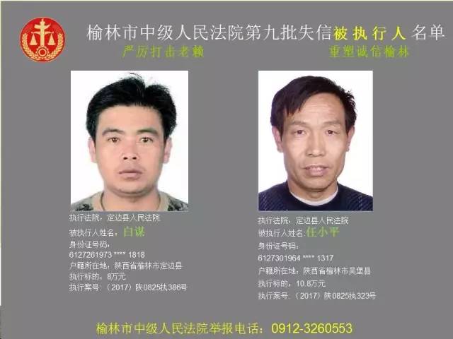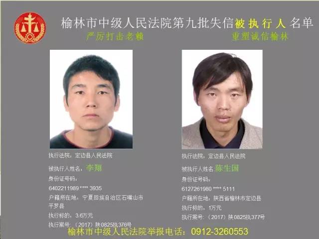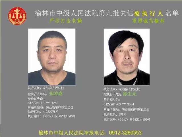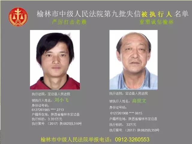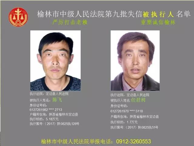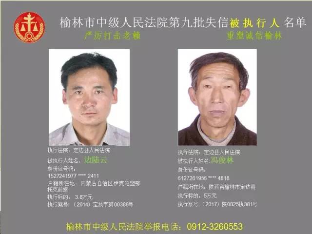 榆林法院曝光第九批第三次81名老賴