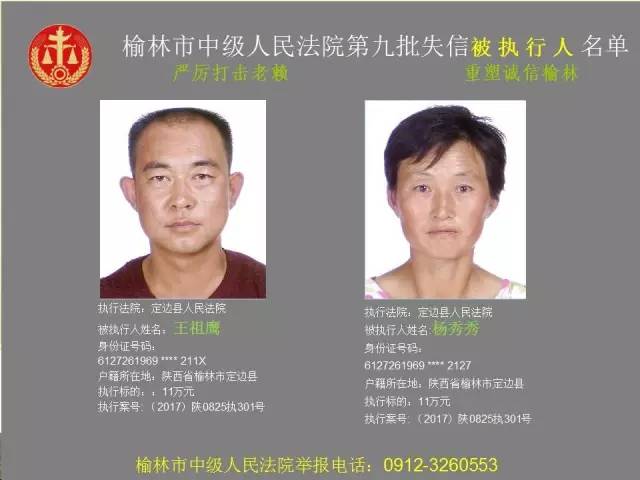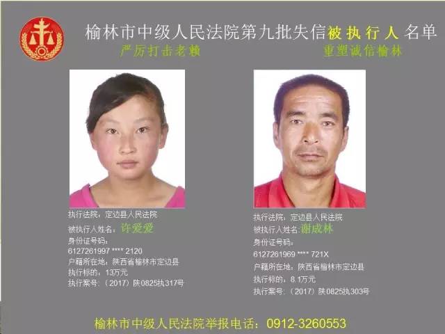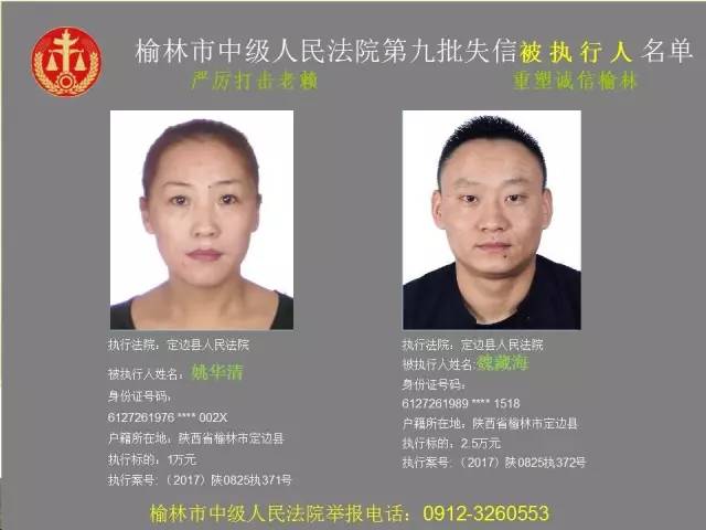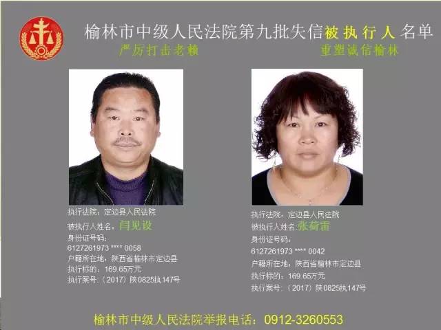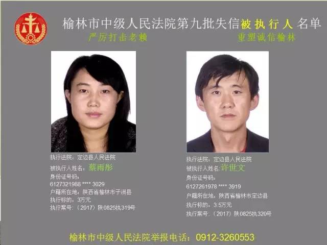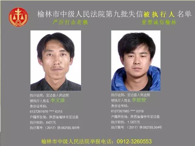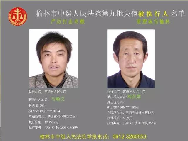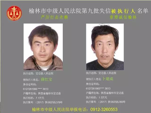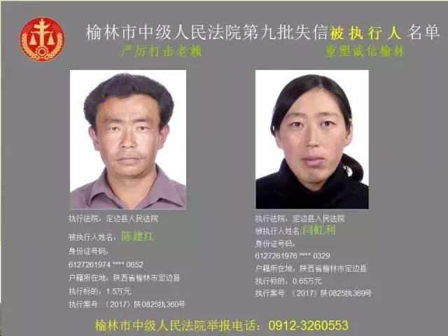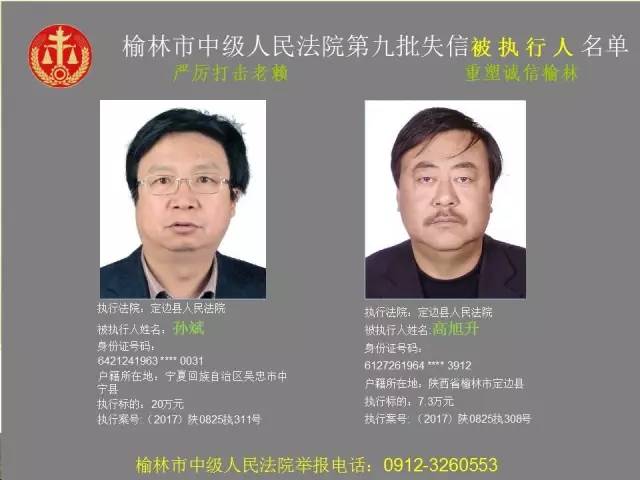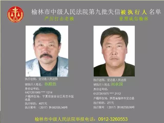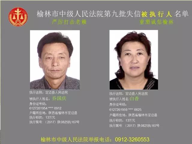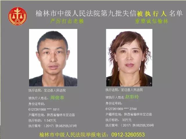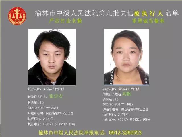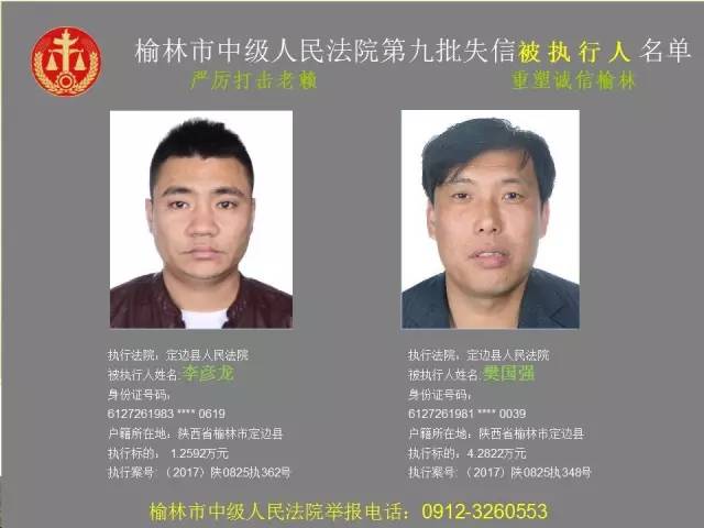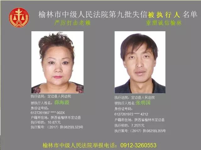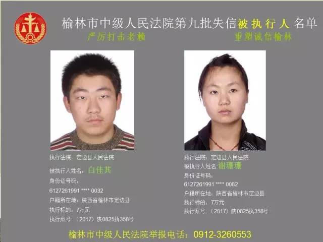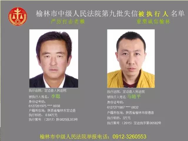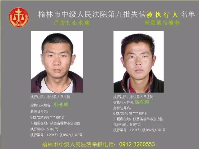 榆林法院曝光第九批第三次81名老賴