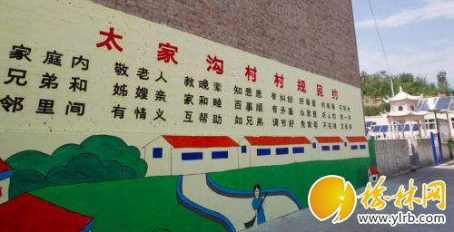 在村委會(huì)辦公樓旁邊,一面面別致新穎的文化墻讓筆者不禁駐足觀看,“兩學(xué)一做”、道德風(fēng)尚等內(nèi)容圖文并茂展現(xiàn)著?!拔幕瘔Σ粌H看上去賞心悅目,還對(duì)村民的日常言行舉止起到教育作用。”姬滿圈說(shuō),繪制文化墻,讓墻壁“說(shuō)話”,是太家溝村精神文明建設(shè)的一個(gè)縮影。通過(guò)文化墻,引導(dǎo)農(nóng)民樹(shù)新風(fēng)、倡新風(fēng),將健康文化送進(jìn)村,在美化環(huán)境的同時(shí)美化了心靈,成為村民家門(mén)口的“活課堂”。
