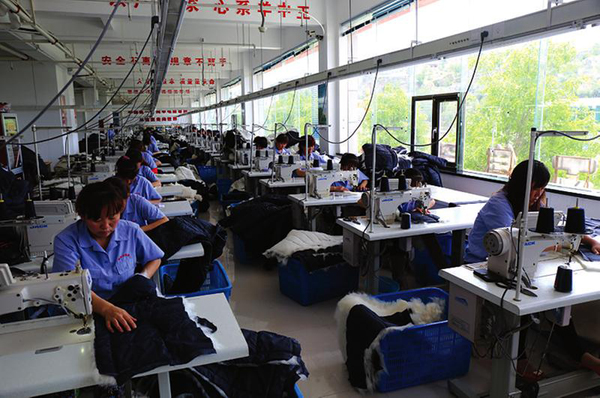 羊中王集團(tuán)羊絨材料制衣車間工人正在趕制棉衣。2014年,橫山縣生產(chǎn)羊毛789噸、羊絨462噸、羊皮74.92萬張,成為“羊老大”、“羊中王”、“七只羊”服裝加工和羊肉深加工廠的簽約供貨源,實(shí)現(xiàn)畜牧業(yè)產(chǎn)值13.22億元,其中養(yǎng)羊產(chǎn)值達(dá)到10.59億元。
