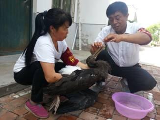 近日,橋山林業(yè)局建莊林場接到轄區(qū)兩位村民從附近河道里撿拾到的一只受傷黑鸛,引起林場的高度重視。他們當即對村民的善舉進行了表揚和肯定,并安排專人及時對受傷的黑鸛進行救治。首先對黑鸛受傷的翅膀進行消毒并喂食消炎藥,同時安排職工到河里捕撈小魚對黑鸛進行喂食。