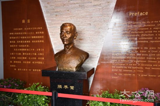 張季鸞先生銅鑄半身胸像位于正廳中央。大公報(bào)記者李陽(yáng)波攝