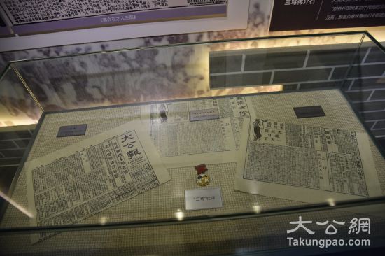 展館陳列的仿制的大公報(bào)報(bào)紙。大公報(bào)記者李陽(yáng)波攝
