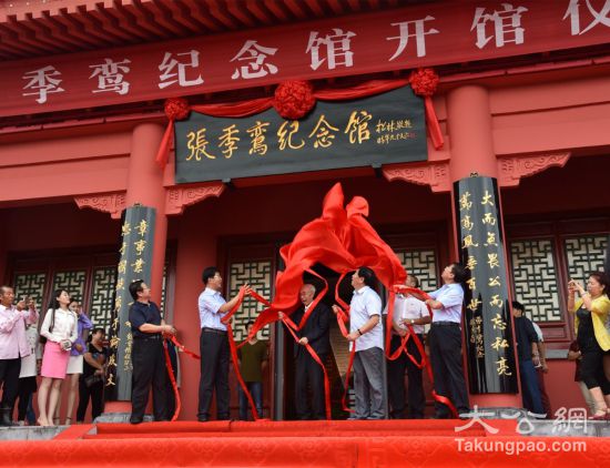 張季鸞紀(jì)念館開(kāi)館儀式現(xiàn)場(chǎng),眾嘉賓為紀(jì)念館進(jìn)行揭幕。大公報(bào)記者李陽(yáng)波攝