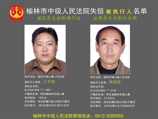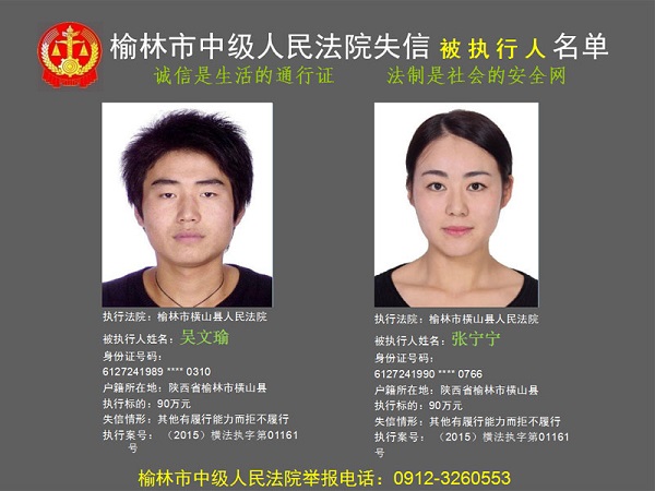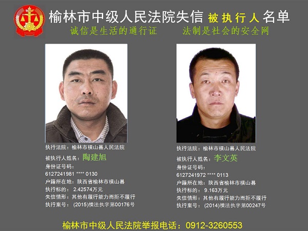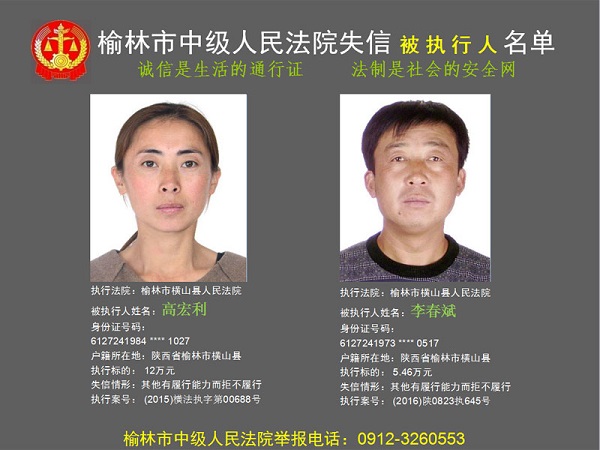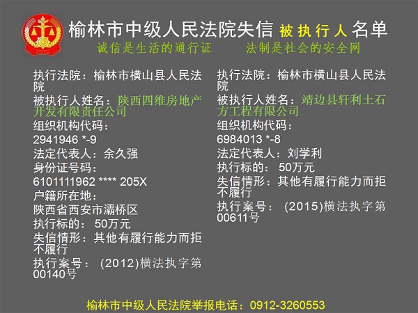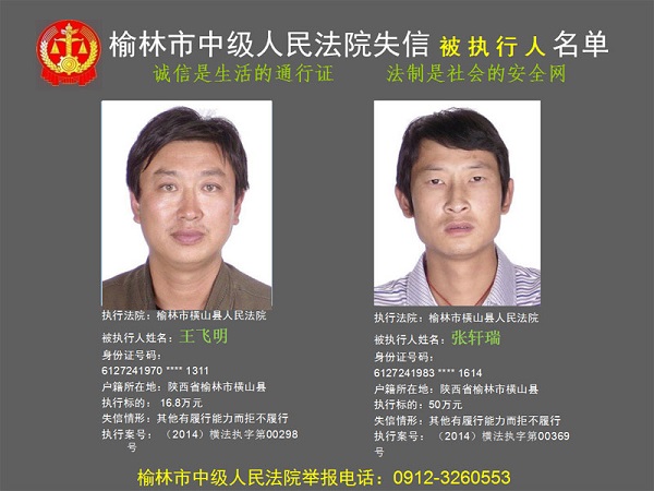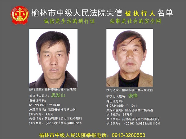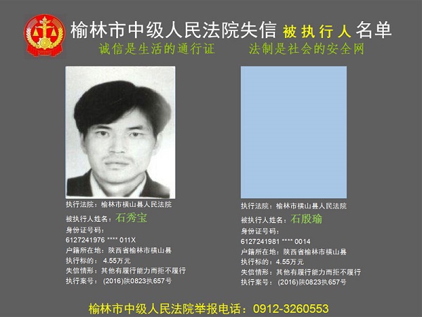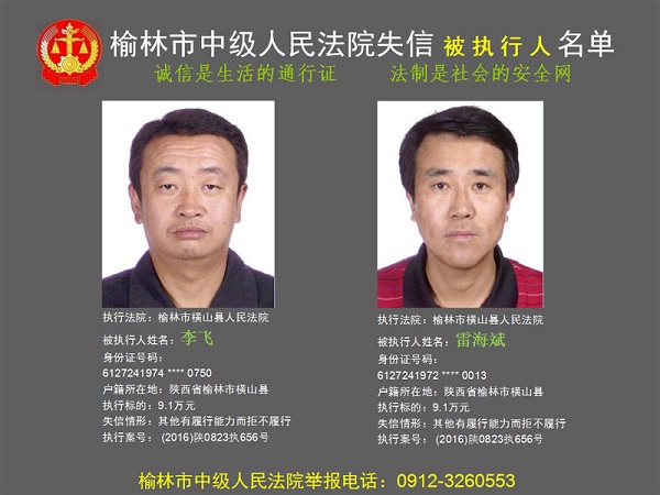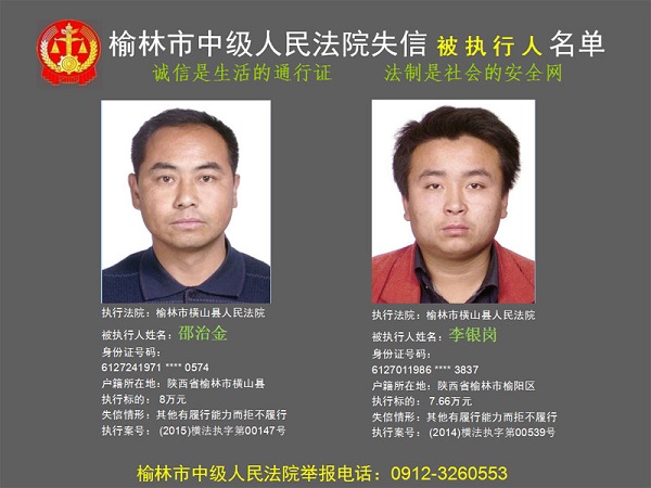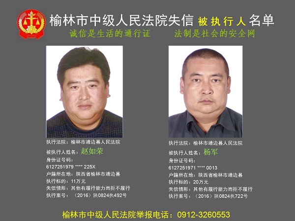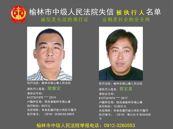 榆林市第六批失信被執(zhí)行人“黑名單”(四)80人