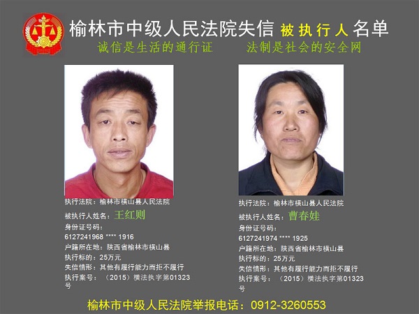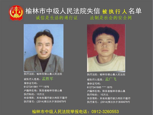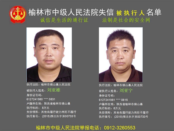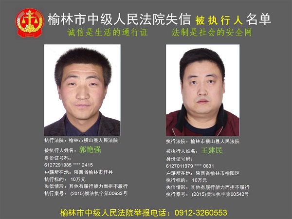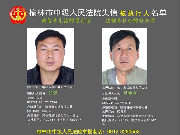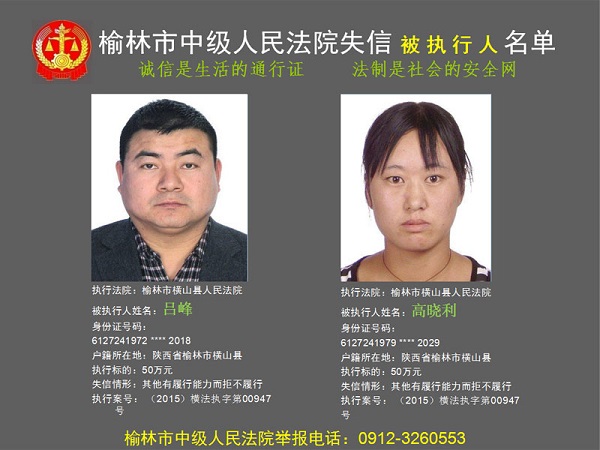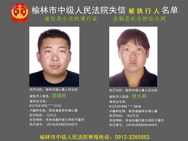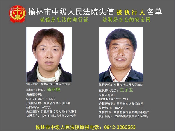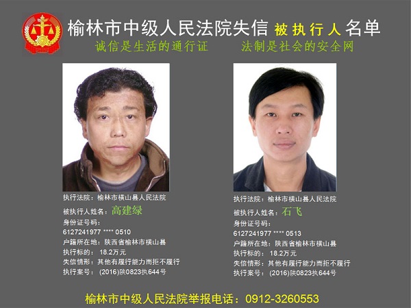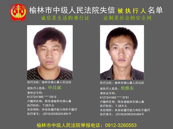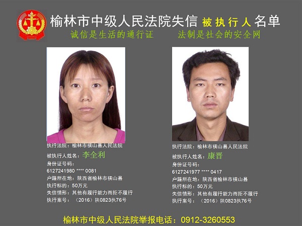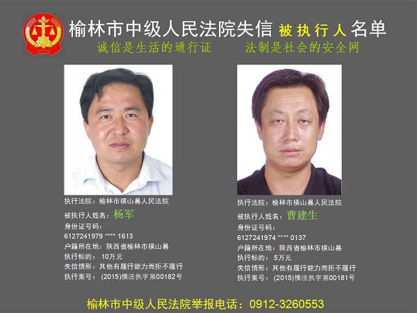 榆林市第六批失信被執(zhí)行人“黑名單”(四)80人