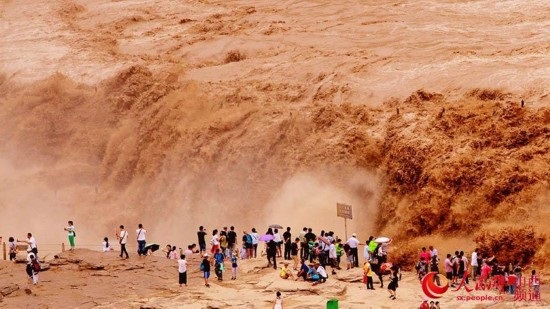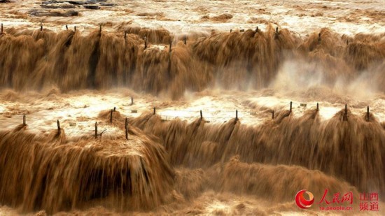 據(jù)了解,此時的黃河壺口瀑布水流量保持在每秒1000立方米左右。從壺口景區(qū)高處舉目遠眺,瀑布主瀑與副瀑連成了一片,形成了寬度約400余米的壯美瀑布群。巨大的洪流從主瀑布上方以萬馬奔騰、排山倒海之勢呼嘯而下,跌入十里龍槽,猶如巨壺沸騰,聲震如雷,形成了水底冒煙、群龍戲浪、彩橋通天等壯美景觀,吸引了大批游客前來觀賞。(郭星星 葛麗娟)