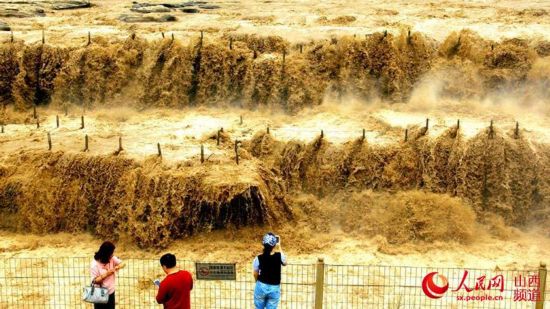連日來,受黃河上游降雨和水庫調(diào)節(jié)放水影響,黃河壺口瀑布迎來今年夏汛以來最大水流量,呈現(xiàn)出壯美的瀑布群景觀。