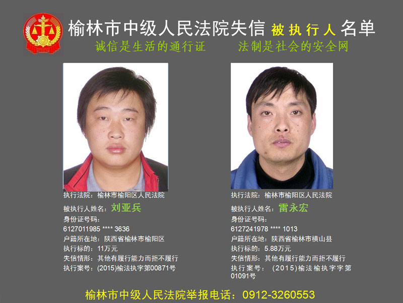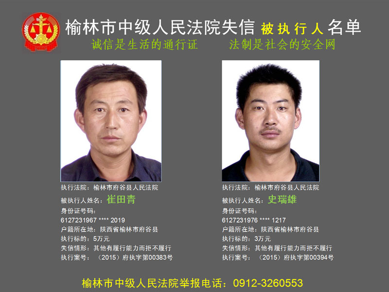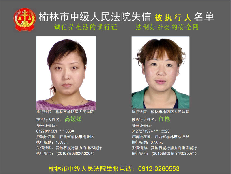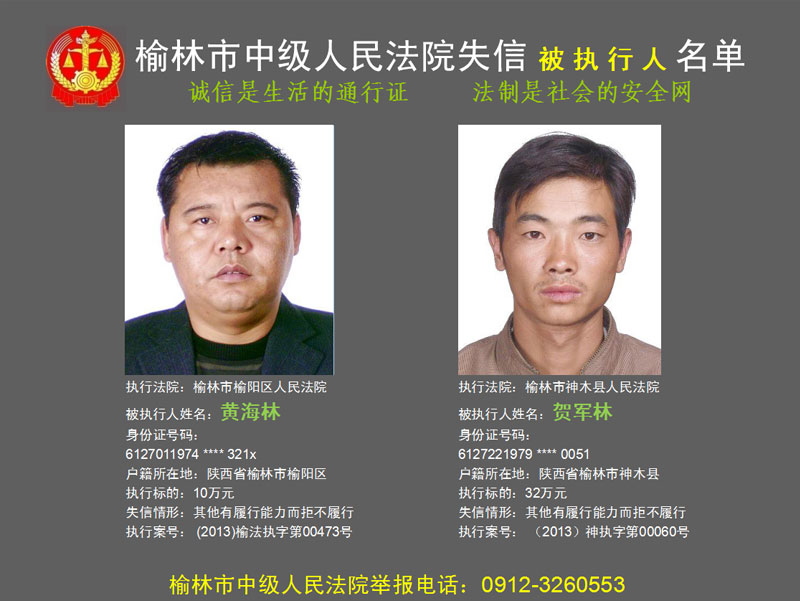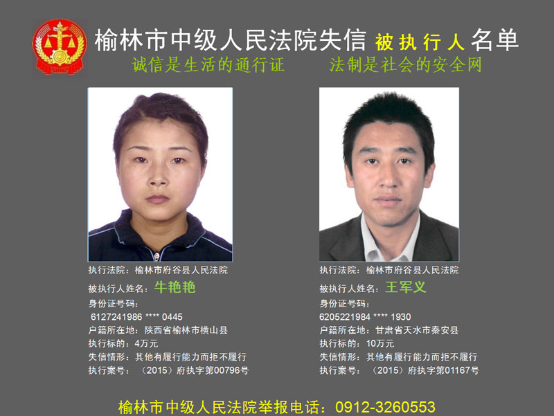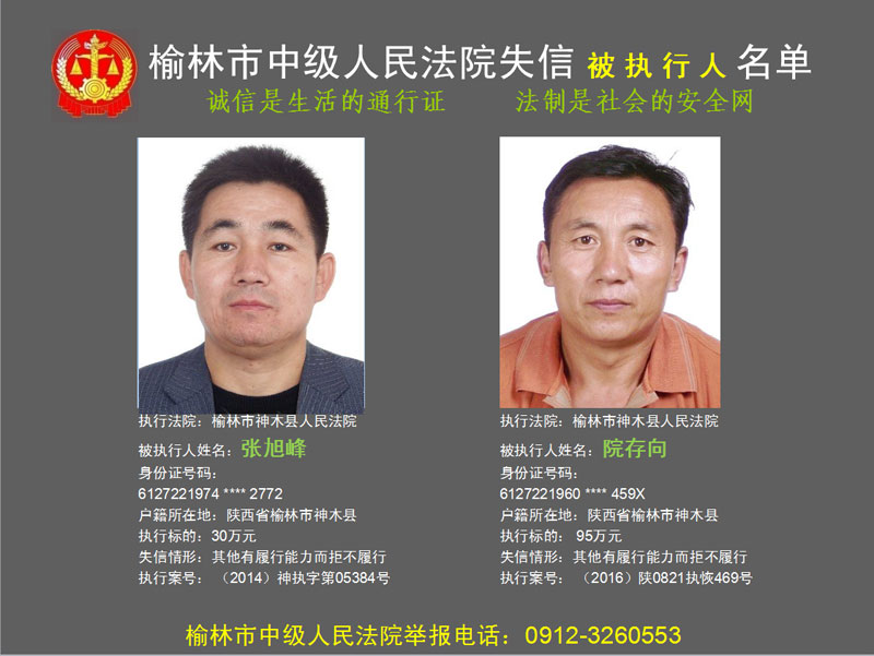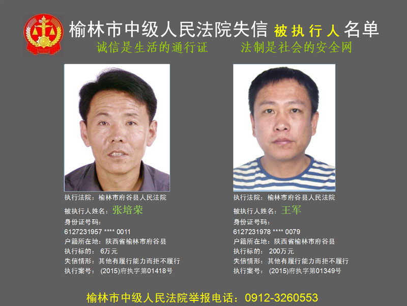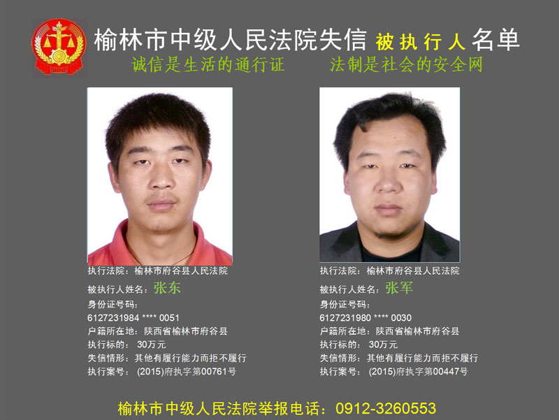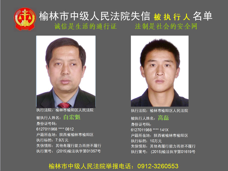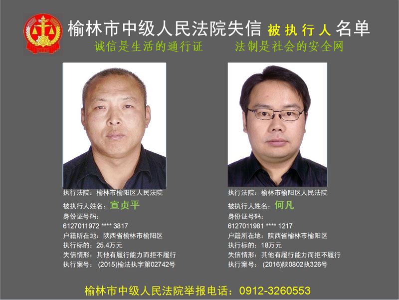 榆林市第六批失信被執(zhí)行人“黑名單”(二)80人