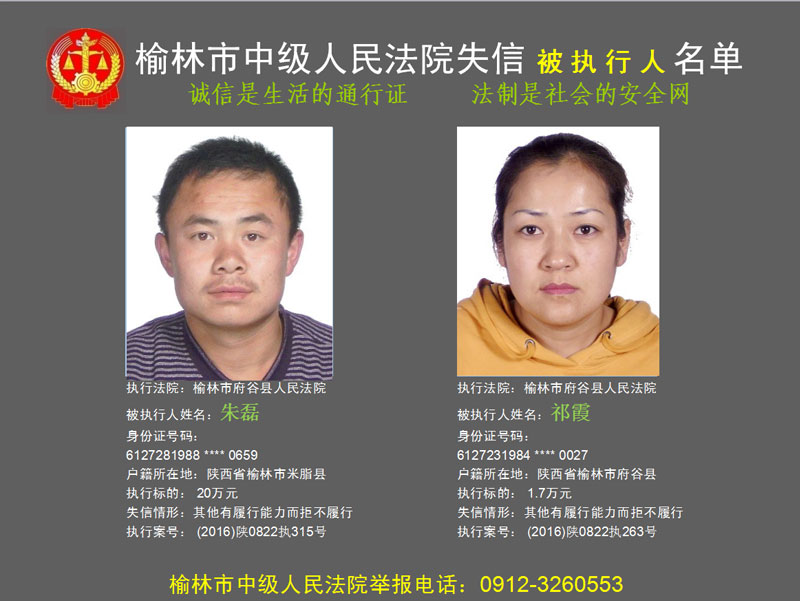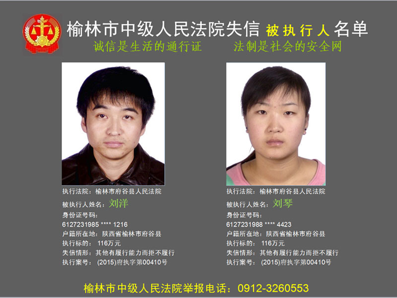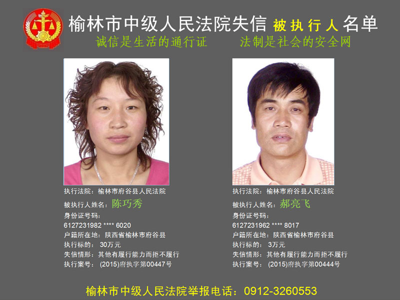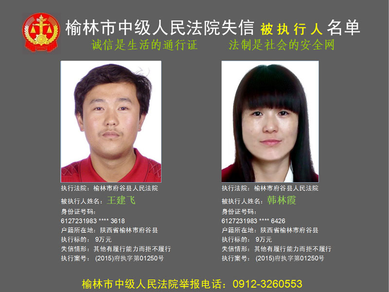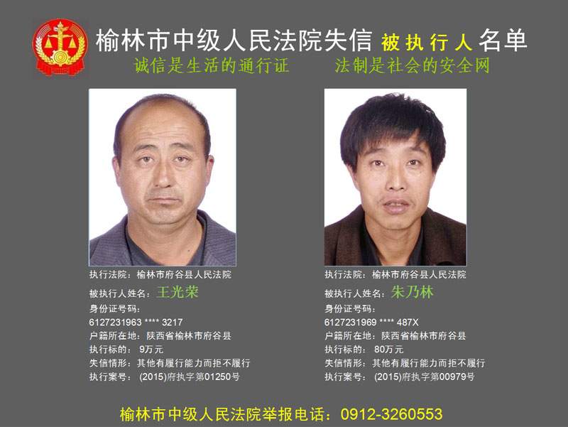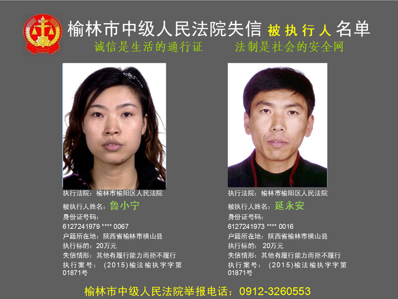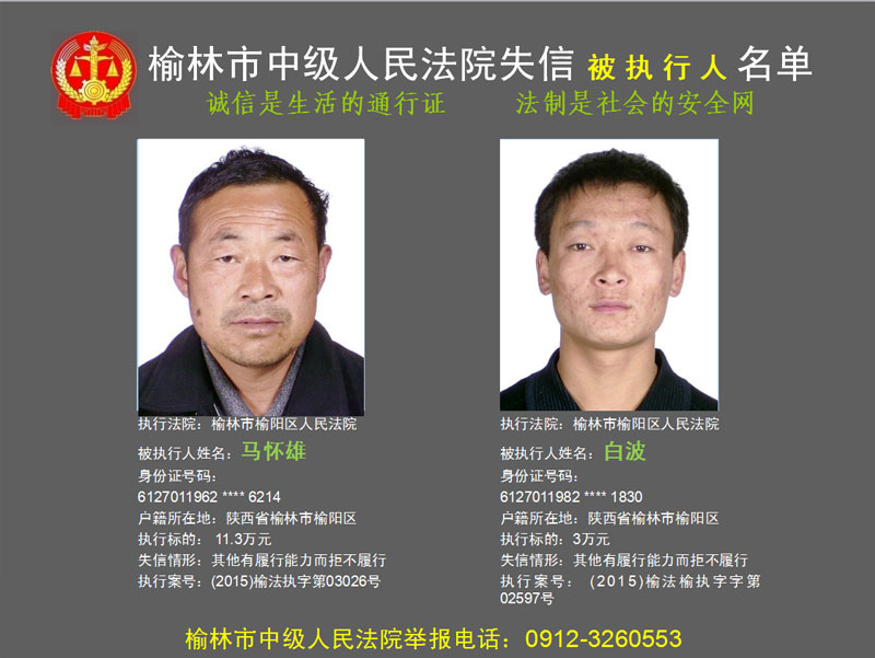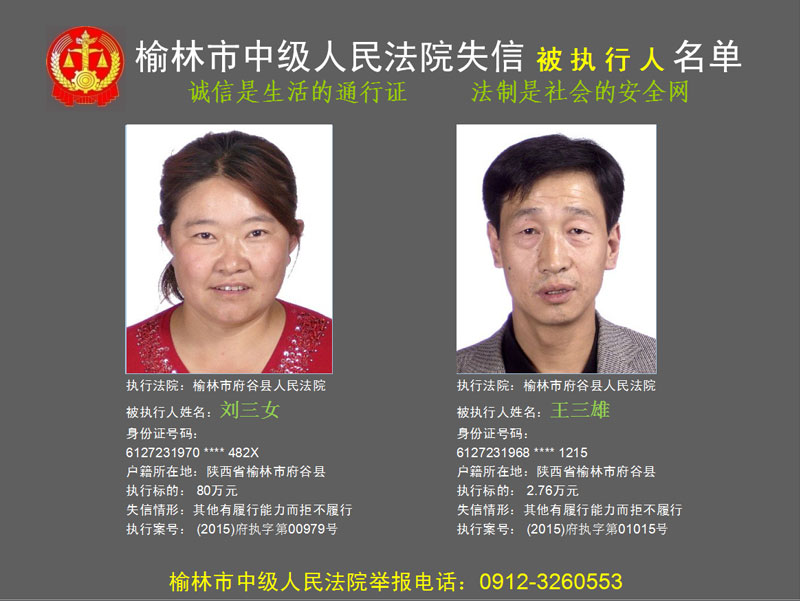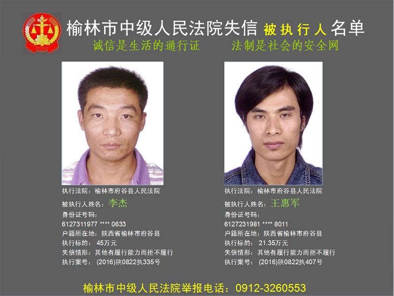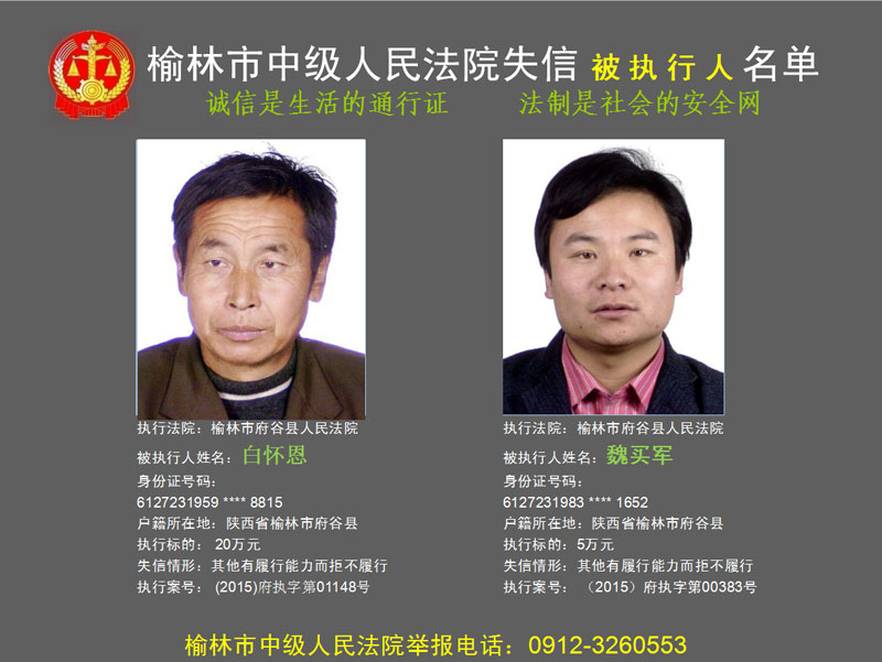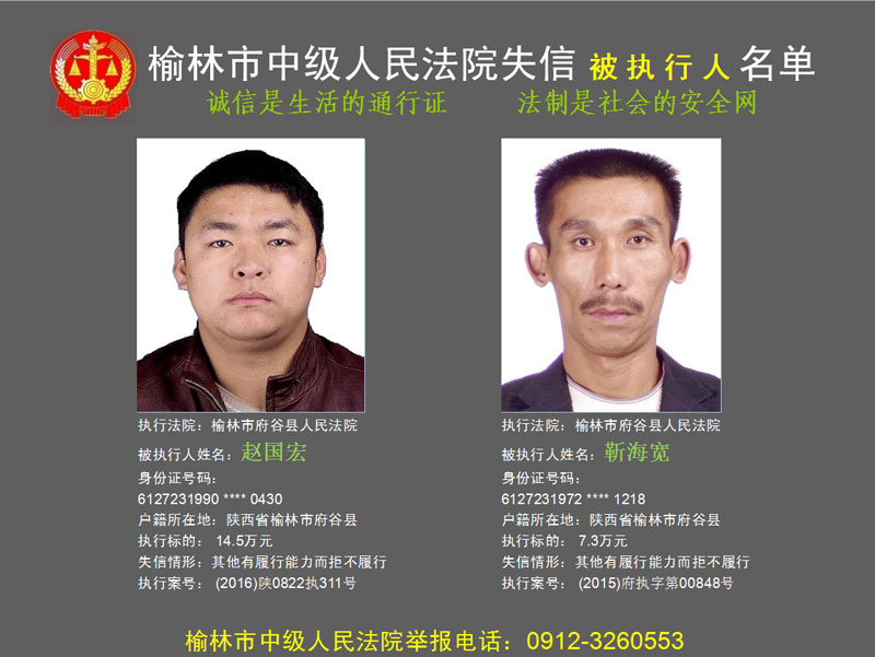 榆林市第六批失信被執(zhí)行人“黑名單”(二)80人