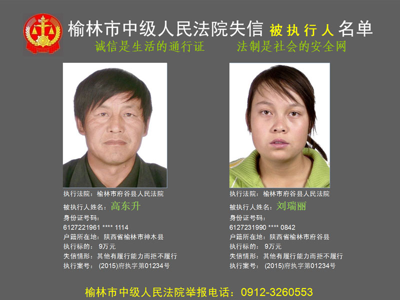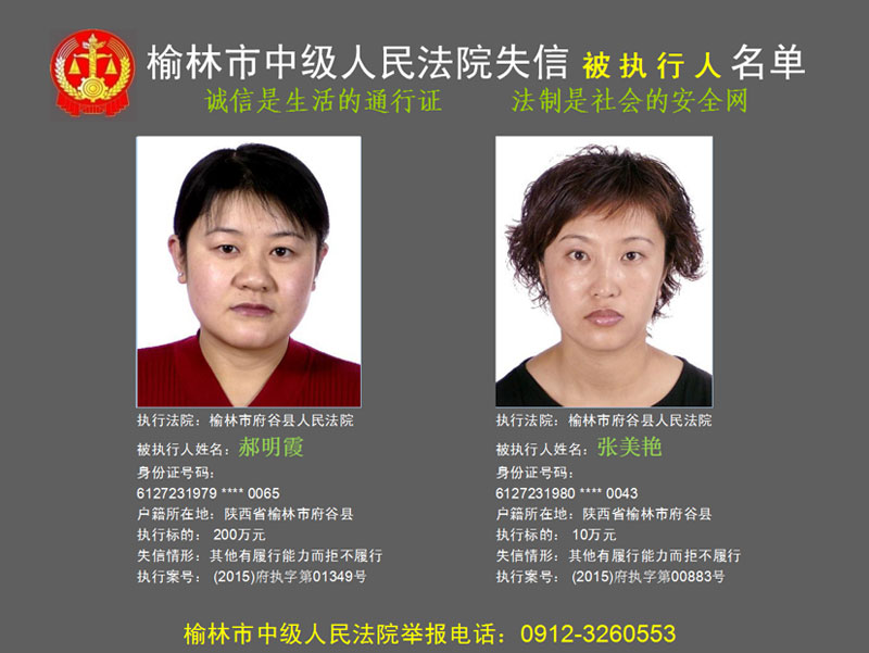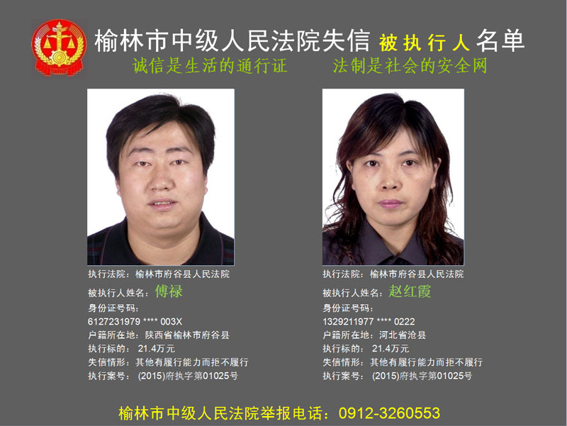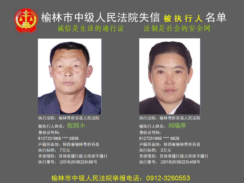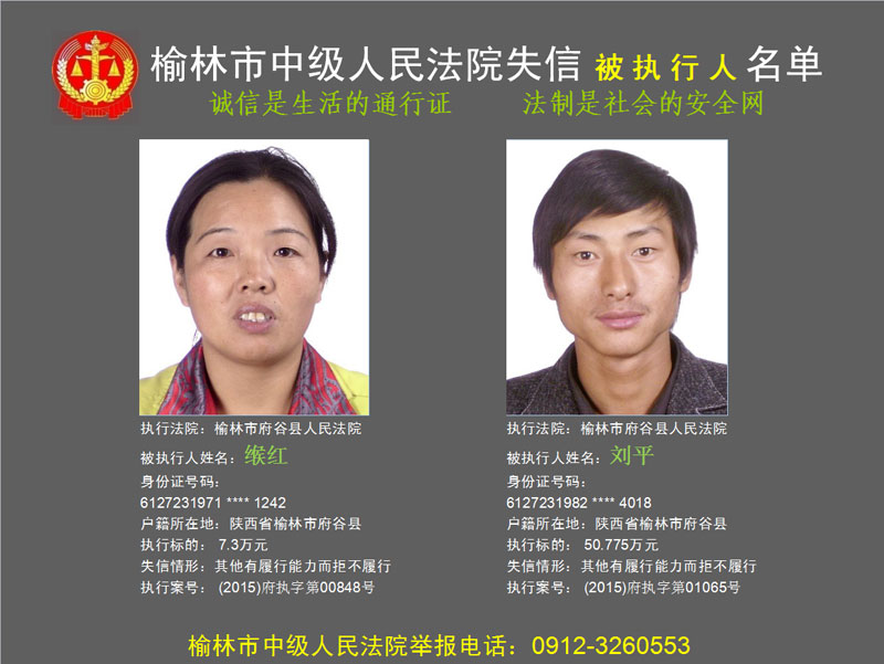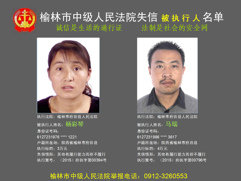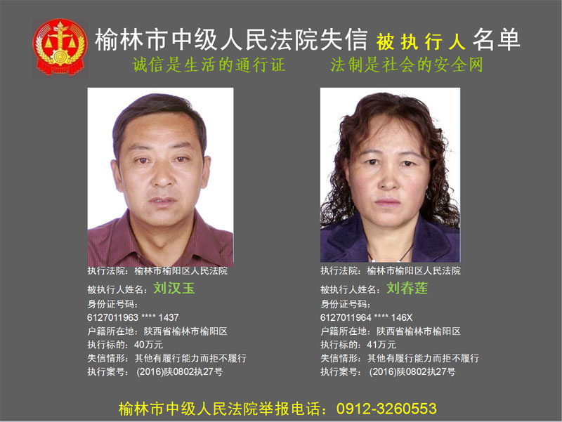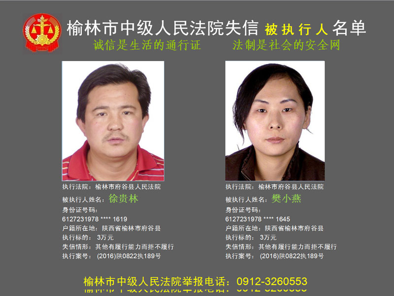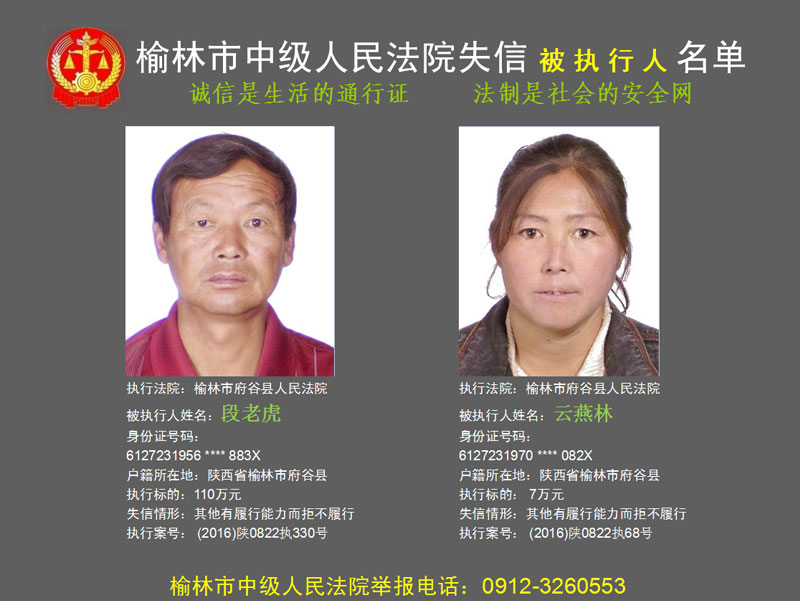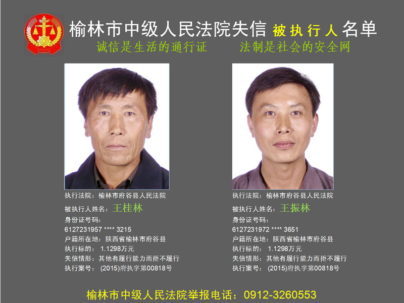 榆林市第六批失信被執(zhí)行人“黑名單”(二)80人