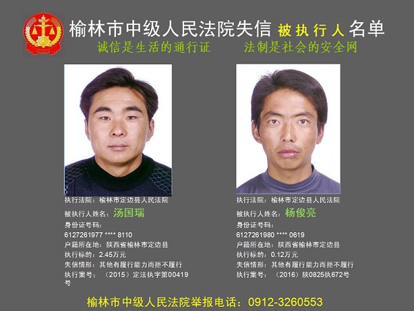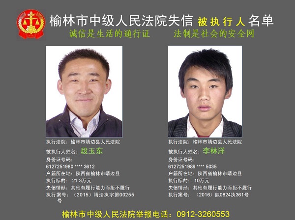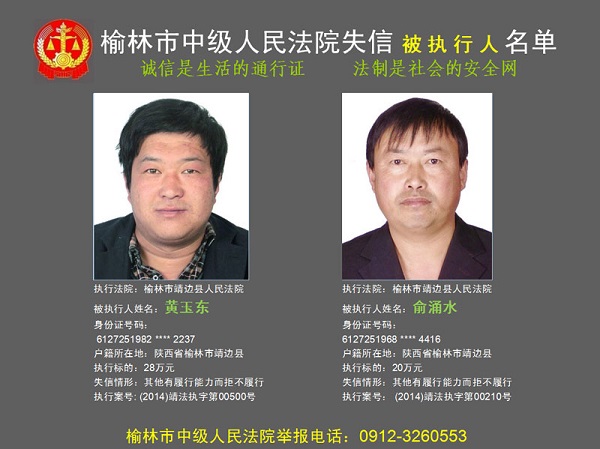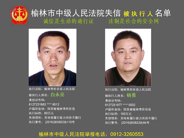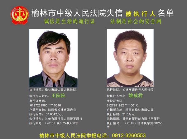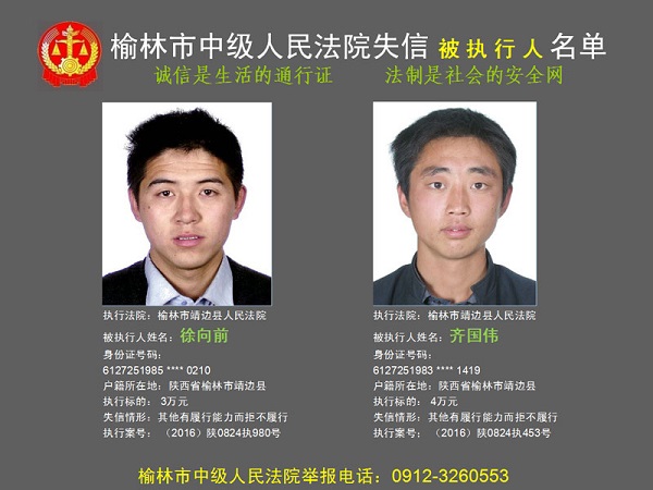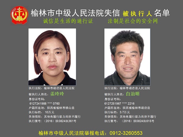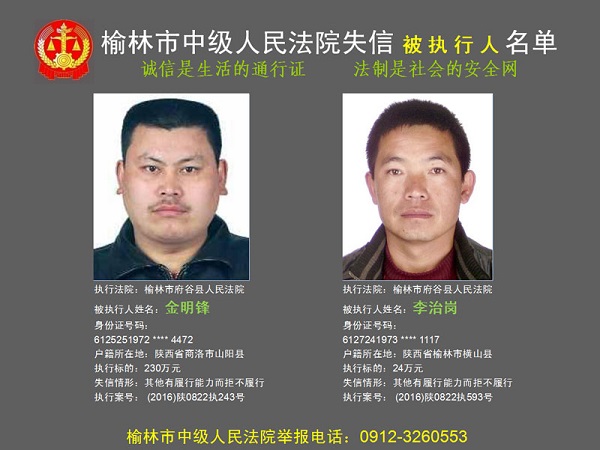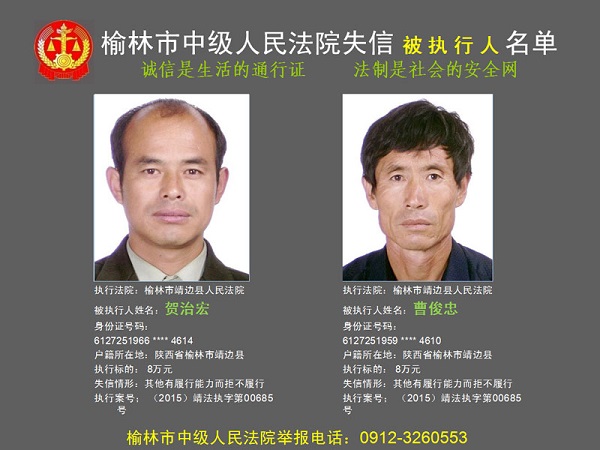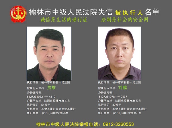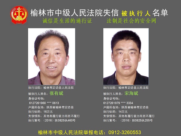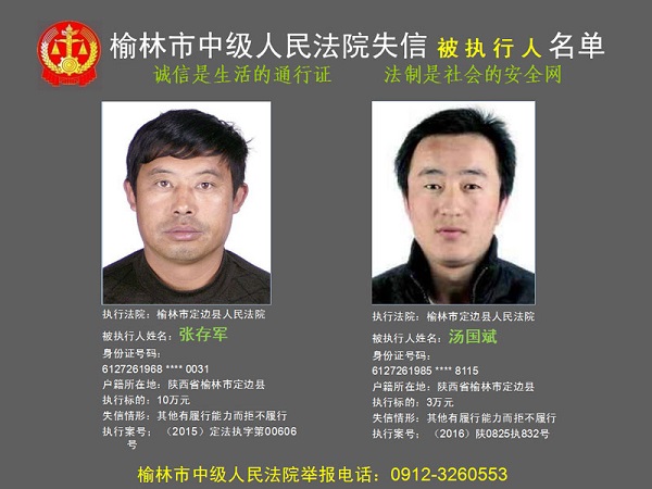 榆林市第六批失信被執(zhí)行人“黑名單”(三)80人
