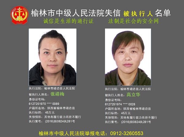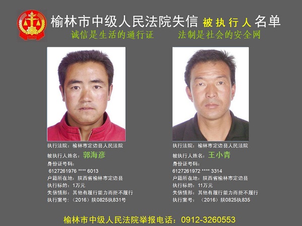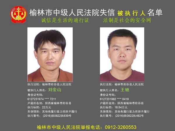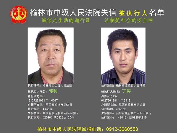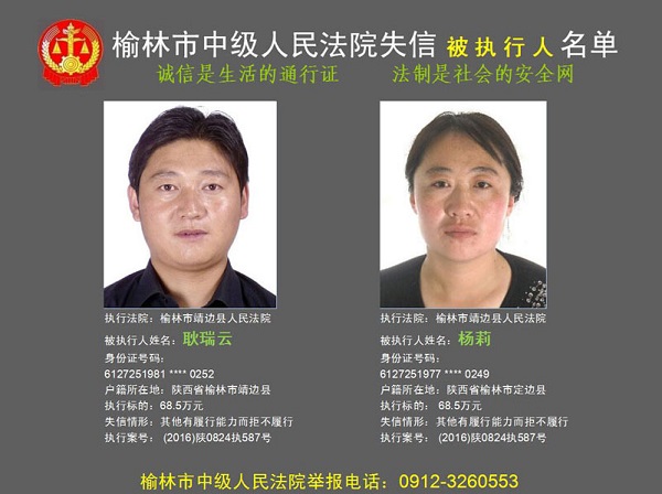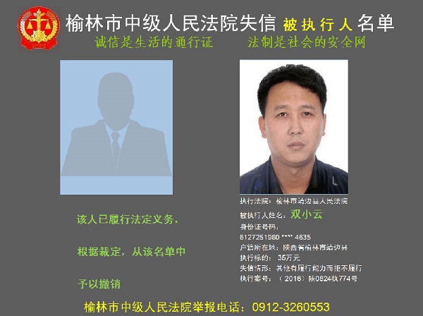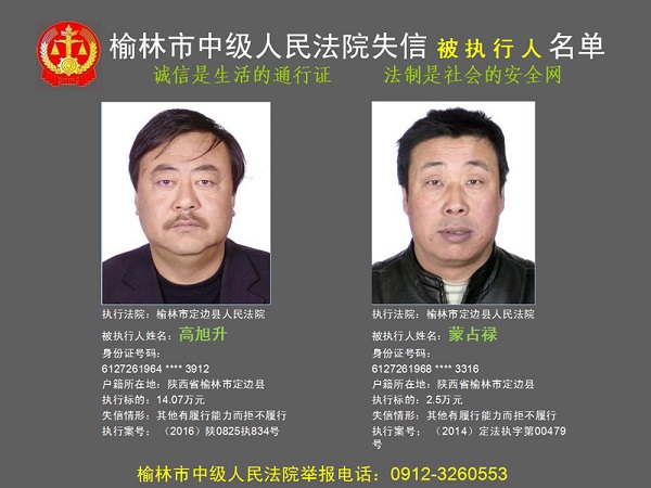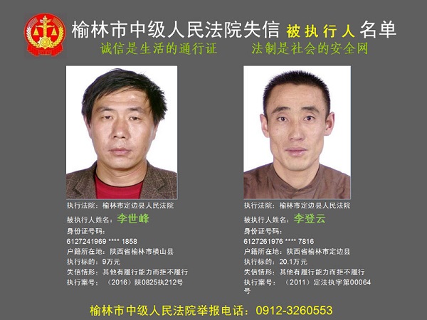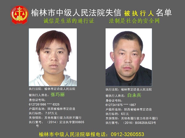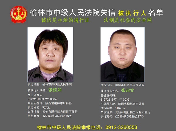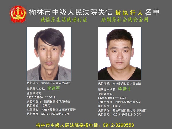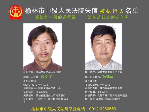榆林市第六批失信被執(zhí)行人“黑名單”(三)80人