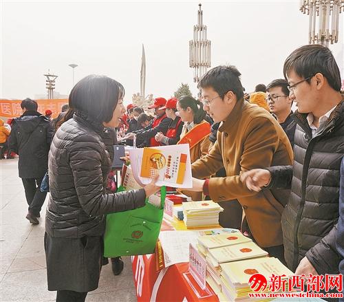 志愿者為群眾發(fā)放宣傳資料