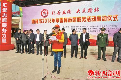 新西部網(wǎng)榆林訊(記者王永程 張宇霞)3月4日上午11時(shí),由榆林市委宣傳部、市委組織部等部門(mén)主辦的主題為“行善立德?大愛(ài)榆林” 2016年學(xué)雷鋒志愿服務(wù)活動(dòng)啟動(dòng)儀式。榆林市、榆陽(yáng)區(qū)文明委領(lǐng)導(dǎo)、黨員志愿者代表、職工志愿者代表、青年志愿者代表等單位10支志愿服務(wù)隊(duì)的1000多名志愿者,現(xiàn)場(chǎng)開(kāi)展“愛(ài)榆林,我是榆林活雷鋒”服務(wù)活動(dòng)。