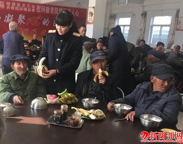 “我們?cè)谕先肆奶爝^程中,感到了敬老院老人們生活無憂的滿足,但也感受到了他們無兒無女內(nèi)心世界的孤獨(dú),有黨的好政策他們其實(shí)不缺吃穿,缺的是有人惦記著,有人經(jīng)常來看望的關(guān)懷和溫暖,我們綏德火車站鐵路青年以后會(huì)經(jīng)常來陪伴老人,讓我們點(diǎn)滴關(guān)懷溫暖老人晚年的心!”綏德火車站團(tuán)支部書記方恒堅(jiān)定的說。