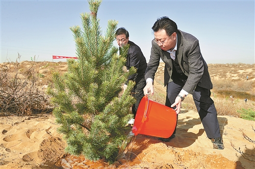 榆林市委書記胡志強、市長尉俊東參加義務(wù)植樹活動