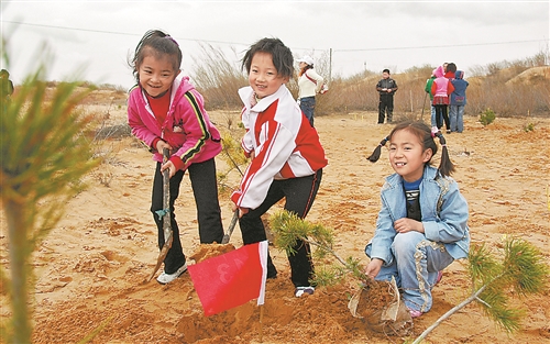青少年如今已經(jīng)成為義務(wù)植樹的生力軍,除統(tǒng)一安排植樹外,學校和有關(guān)部門還組織開展“走進親子林、我愛大自然”、和諧家庭共植親子林等活動,全市青少年每年義務(wù)植樹近100萬株。