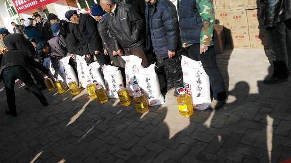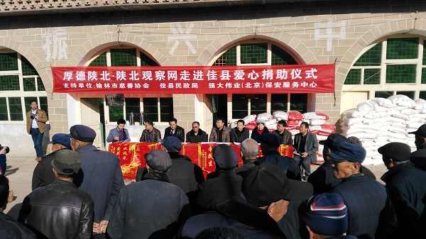 新西部網(wǎng)榆林訊(記者馮永春)12月29日,由陜北觀察網(wǎng)發(fā)起的為陜北貧困老人和貧困家庭送溫暖的愛心行動,在佳縣大佛寺鄉(xiāng)長塄村舉行。本次活動共為佳縣大佛寺鄉(xiāng)長塄村的75戶60歲以上的老人和17戶困難家庭捐贈了價值近5萬元的愛心物資,其中:榆林市慈善協(xié)會捐贈大米75袋,價值1萬多元;佳縣民政局捐贈善款1萬元;強大偉業(yè)(北京)保安服務(wù)中心捐贈白面75袋,食用油75桶,價值2多萬元。