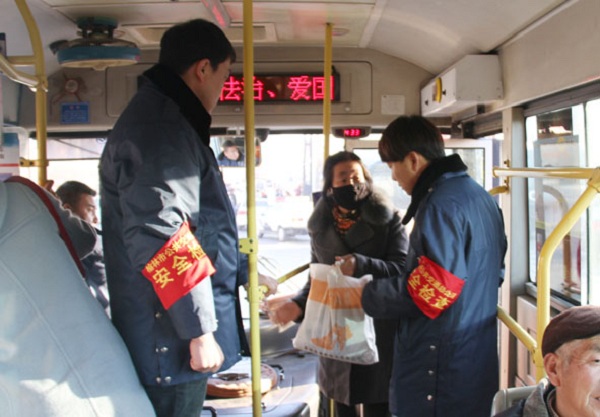 1月12日,榆林市公交公司特抽調(diào)60余名工作人員,由公司總經(jīng)理付明榮、書記謝治軍等領(lǐng)導(dǎo)班子親自帶隊,在客流量集中的站點疏導(dǎo)交通和安全檢查,嚴防“三品”及其他危險品上車,保障乘客生命財產(chǎn)安全。