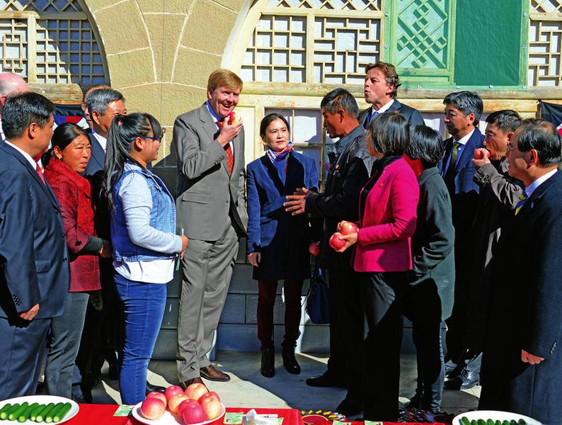 10月27日,荷蘭國王威廉-亞歷山大赴延安參觀訪問。圖為他在安塞縣沿河灣鎮(zhèn)方塔村村民家詢問生產(chǎn)生活情況。(本報記者 母家亮 通訊員 李軍喜 攝)