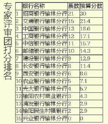 9月2日,“2015榆林市民最滿意的銀行評選”活動進行了專家評審團打分,專家評審團由5位成員組成,他們分別是華商報社、榆林學院管理學院以及榆林市消費者協(xié)會的相關(guān)負責人,他們本著公開、公正、公平的原則,以專業(yè)的角度和學識,為參賽的銀行“打分”。經(jīng)過統(tǒng)計,位居專家評審團評審結(jié)果前三名的分別是:招商銀行榆林分行、交通銀行榆林分行、中國銀行榆林分行。