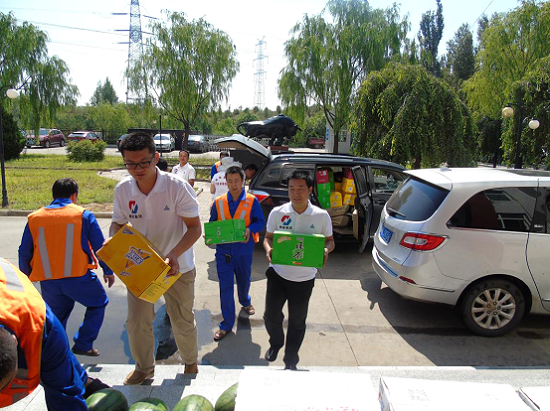 新西部網(wǎng)榆林訊(通訊員曹國飛)切實維護高溫天氣下廣大職工的身體健康,做好防暑度夏工作,近日,陜西榆林能源集團有限公司志愿者服務(wù)隊組織機關(guān)志愿者開展了“情系一線,夏送清涼”活動。此次活動分兩個小隊,由志愿者服務(wù)隊副隊長王鵬、張小荔分別帶隊赴基層一線生產(chǎn)企業(yè)慰問頂著高溫酷暑辛勤工作的一線工人,為他們送去了西瓜、礦泉水、清涼油等防暑降溫物品,送去組織的關(guān)心,送去夏日的清涼。