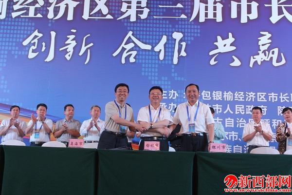 會(huì)上,榆林市、包頭市、鄂爾多斯市簽署了《關(guān)于推動(dòng)包西客運(yùn)專線列入國(guó)家“十三五”規(guī)劃并先行啟動(dòng)建設(shè)的合作協(xié)議》;銀川市、榆林市、烏海市簽署了《葡萄與葡萄酒產(chǎn)業(yè)發(fā)展合作協(xié)議》;經(jīng)濟(jì)區(qū)各成員城市市長(zhǎng)共同簽署了《呼包銀榆經(jīng)濟(jì)區(qū)共建“一帶一路”戰(zhàn)略支點(diǎn)榆林行動(dòng)綱領(lǐng)》《呼包銀榆經(jīng)濟(jì)區(qū)交通合作協(xié)議》《呼包銀榆經(jīng)濟(jì)區(qū)高職教育合作框架協(xié)議》等。