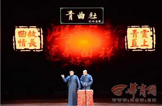 青曲社相聲演員韓海亮、寇琦、閆子晨、賀強(qiáng)等表演了《規(guī)矩論》、《歡樂pk》、《學(xué)聾啞》、《老侯赴宴》,以及苗阜、王聲表演的《學(xué)富五車》、《禮儀漫談》六個相聲節(jié)目,受到了現(xiàn)場觀眾的熱烈追捧,他們紛紛表示這是一臺非常值得一看的相聲表演,特別是對榆林的觀眾來說,更是一次難得的體驗,甚至有粉絲不遠(yuǎn)千里從北京趕來為苗阜王聲捧場。