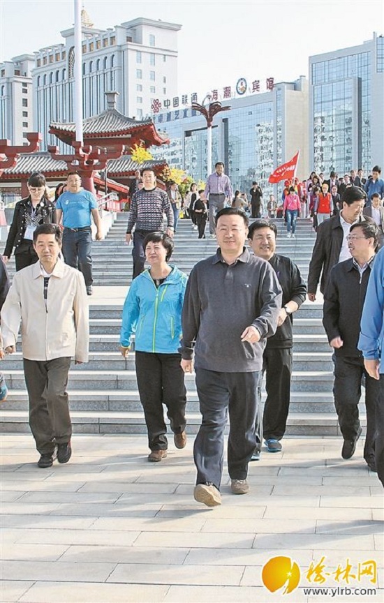 榆林日報記者閆景攝影報道 5月9日上午,陽光明媚,市區(qū)榆溪河河濱公園廣場上熱鬧非凡,市全民健康健步行活動正式拉開帷幕。市委書記胡志強,市政協(xié)主席劉漢利,市委常委、副市長李春臨,市委常委、副市長劉志,副市長馬秀嵐,市政協(xié)副主席李瑞等市領導參加啟動儀式并帶頭“走起”。
