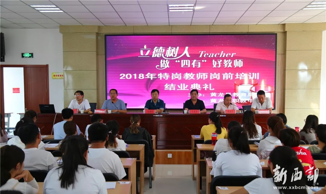 新西部網(wǎng)延安訊(通訊員李龍翔)8月26日下午,為期15天的2018年特崗教師崗前培訓(xùn)結(jié)業(yè)典禮在黃龍縣職教中心舉行,黃龍縣教育局局長(zhǎng)車照民、政協(xié)副主席、職教中心校長(zhǎng)王春生、教育局副局長(zhǎng)董玉平、教研室主任解虎靈、教研室副主任林成、職教中心副校長(zhǎng)丁偉平出席結(jié)業(yè)典禮。教研室主任解虎靈主持。