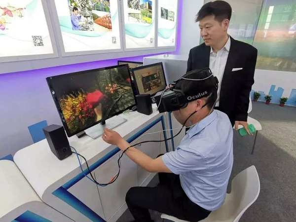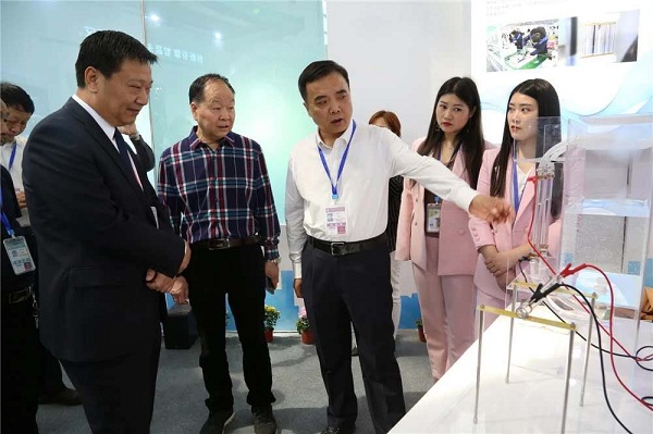 徐新榮一行先后查看了金風科技風力發(fā)電機組模型、七杰碳纖維電采暖裝置、珠海興業(yè)智能調(diào)光玻璃、韓國VR視覺嗅覺觸覺虛擬體驗、能源發(fā)儲用綜合應(yīng)用、延安制藥廠代表藥品、天才生物科技艾灸給藥組合套裝等展品,并與企業(yè)代表、技術(shù)專家交流,仔細了解產(chǎn)品特色、技術(shù)原理、應(yīng)用領(lǐng)域等。